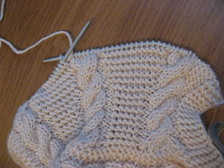 Вяжем 16 рядов без прибавок, дальше меняем спицы на №4 и делаем прибавки. Петли прибавляем по бокам от "кос" и обрамляющих их изнаночных петель. Мы имеем 5 "кос", прибавляем по одной петле с каждой стороны от "косы" и того получаем 10 петель в ряду.