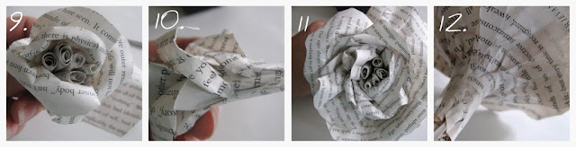 7. Последовательно начните оборачивать их вокруг самодельной "тычинки" , закрепляя клеем.Начиная с более маленьких и заканчивая крупными.